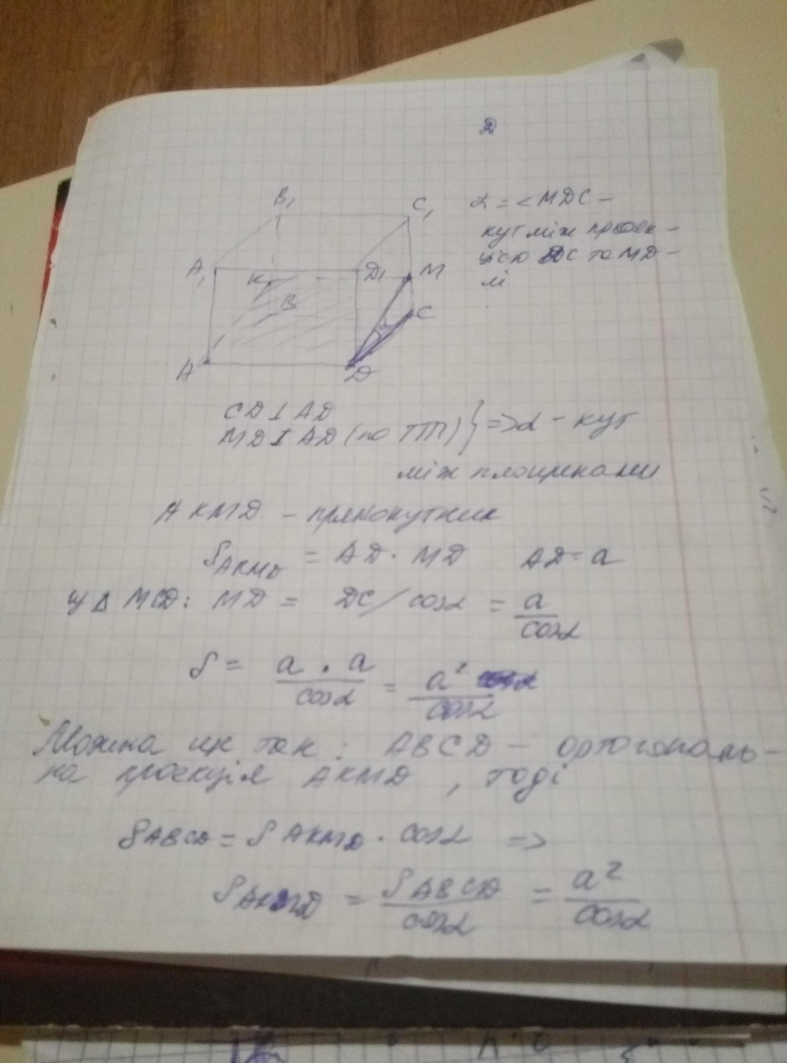 да, и тоже 2 варианта решений , только АА1Д1Д - теперь проекция