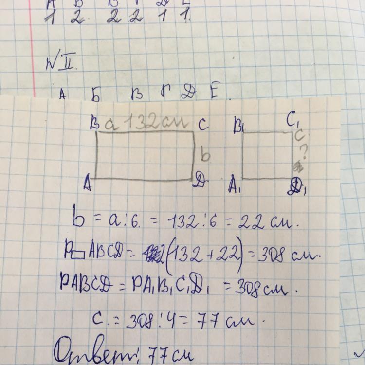 если периметр квадрата тоже 308 см, то его сторона рана 308: 4=77 (см)