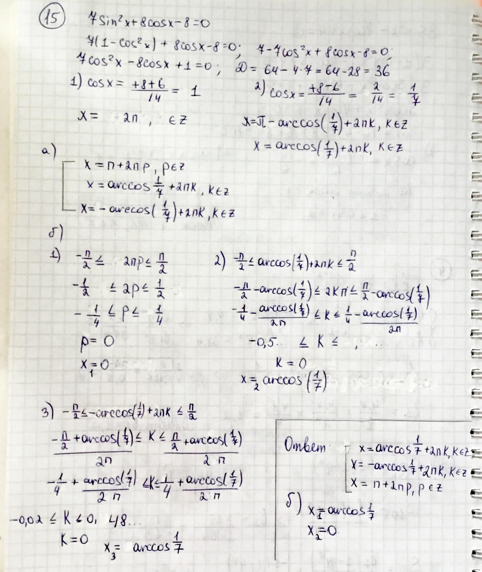 в 15 в б.3 будет -arccos(1/7), и в ответ его тоже надо записать к б
