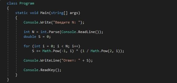 S += Math.Pow(-1, i) * (1 / Math.Pow(2, i));