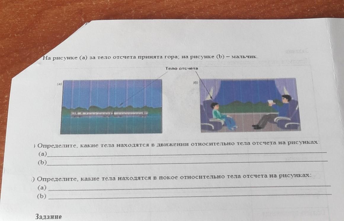 СМОТРИ,НА РИСУНКЕ А ТЕЛО ОТСЧЕТА ЭТО ГОРА,ЗНАЧИТ ОТНОСИТЕЛЬНО ГОРЫ ПОЕЗД ДВИГАЕТСЯ,А НА РИСУНКЕ Б ОТНОСИТЕЛЬНО МАЛЬЧИКА ПОЕЗД ДВИГАЕТСЯ,А МАЛЬЧИК ОТНОСИТЕЛЬНО ПОЕЗДА СТОИТ