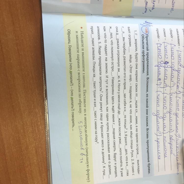 3. разглядел (что делать?) глядеть, держала (что делать?) держать,