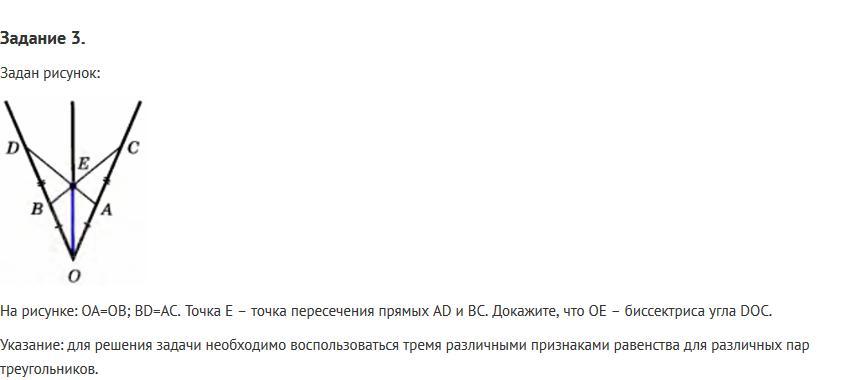 тогда треугольники ОВЕ и ОАЕ равны по 3 сторонам и <BOE=<AOE-значит ОЕ-биссектриса