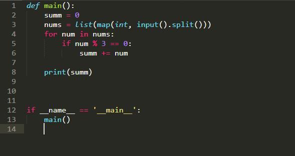 Найти в ряду последовательных значений сумму элементов кратных трём.