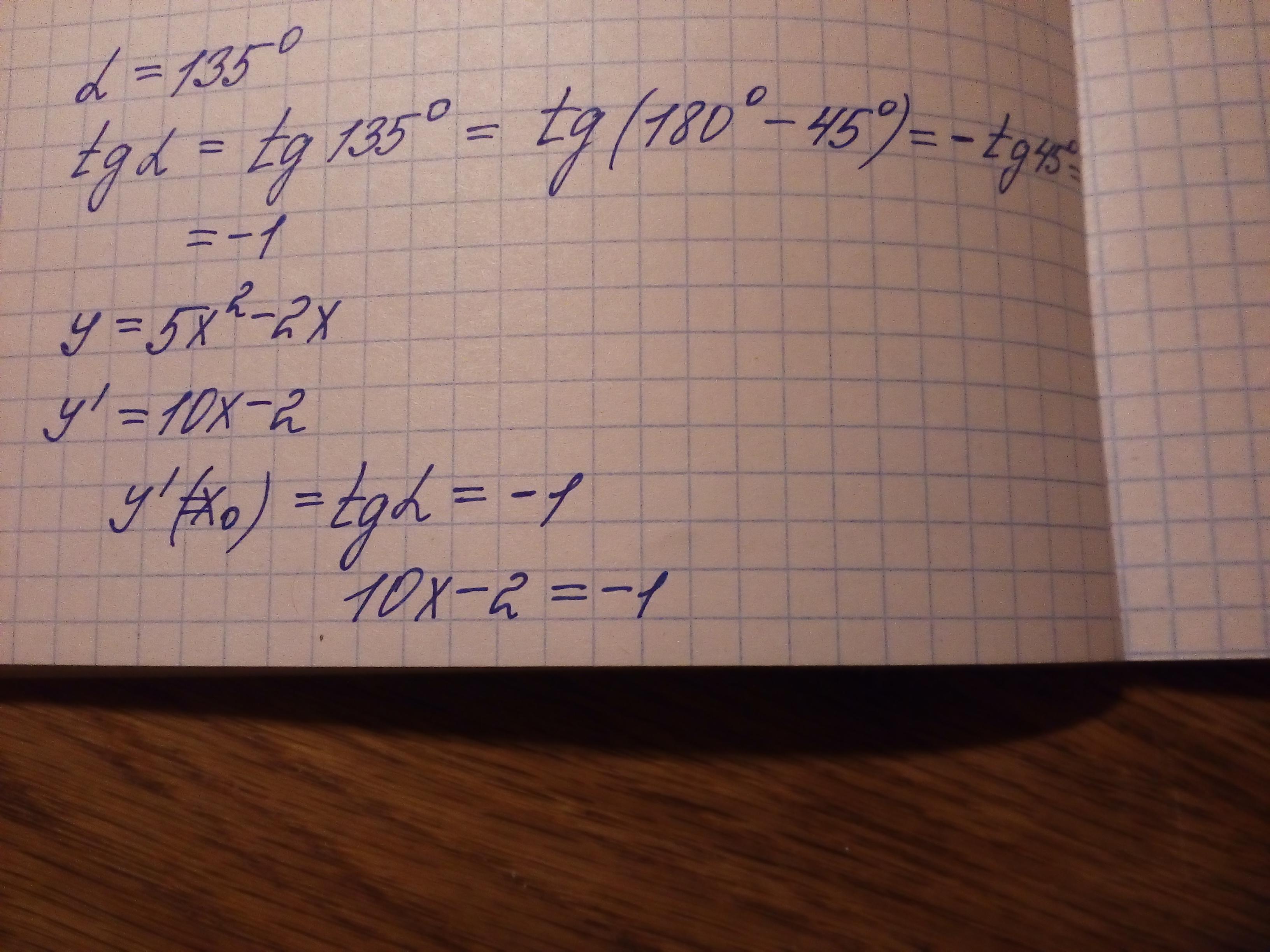 яка утворює з додатним напрямом осі x кут 135°. У відповідь записати абсцису точки дотику.