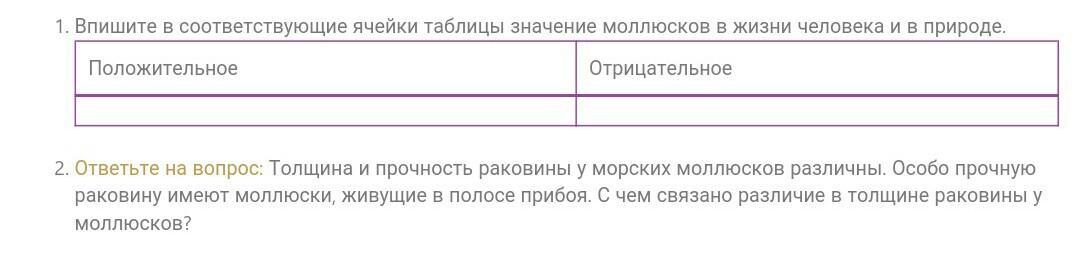 положительное: фильтруют воду, могут "производить"(я хз, как это правильно написать, сорре) жемчужины(жемчужница), питаются мелкими организмами, которые могут быть вредными, можно употреблять в пищу, по большей части очень полезные, являются кормом для рыб, морских птиц, моржей, некоторых заводят в качестве домашних животных