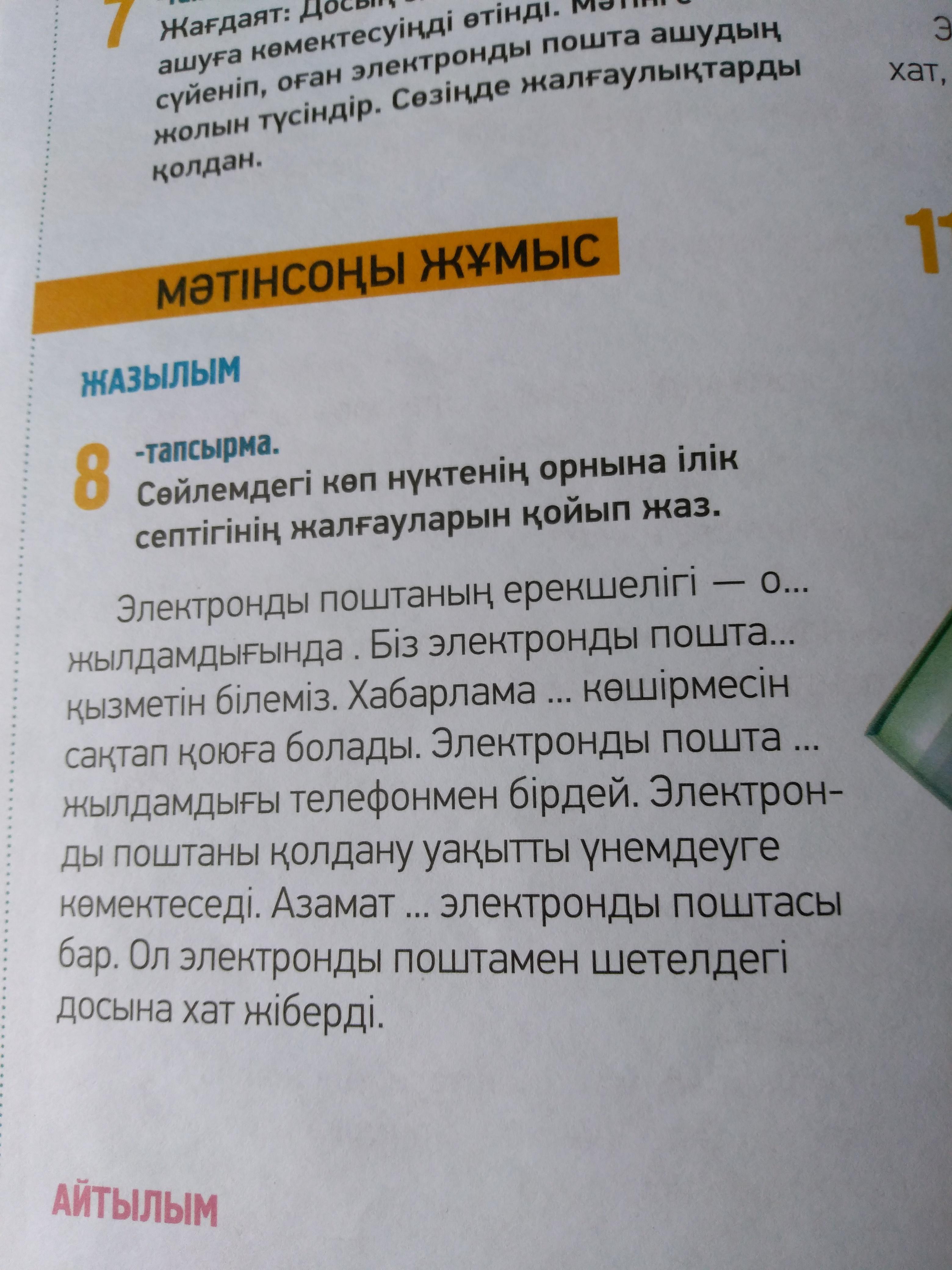 Электронды поштаның ерекшелігі-оның жылдамдығында. Біз электронды поштаның кызметін білеміз. Хабарламаның көшірмесін сақтап қоюға болады. Электронды поштаның жылдамдығы телефонмен бірдей. Электронды поштаны қолдану уақытты үнемдеуге көмектеседі. Азаматтың электронды поштасы бар. Ол электронды поштамен шетелдегі досына хат жіберді