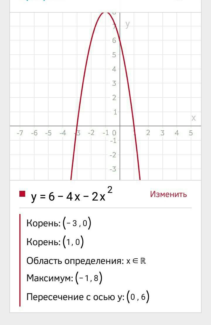 Постройте график функции y=6-4x-2x^2 Найдите: а) область значений функции; б) при каких значениях аргумента функция возрастает.