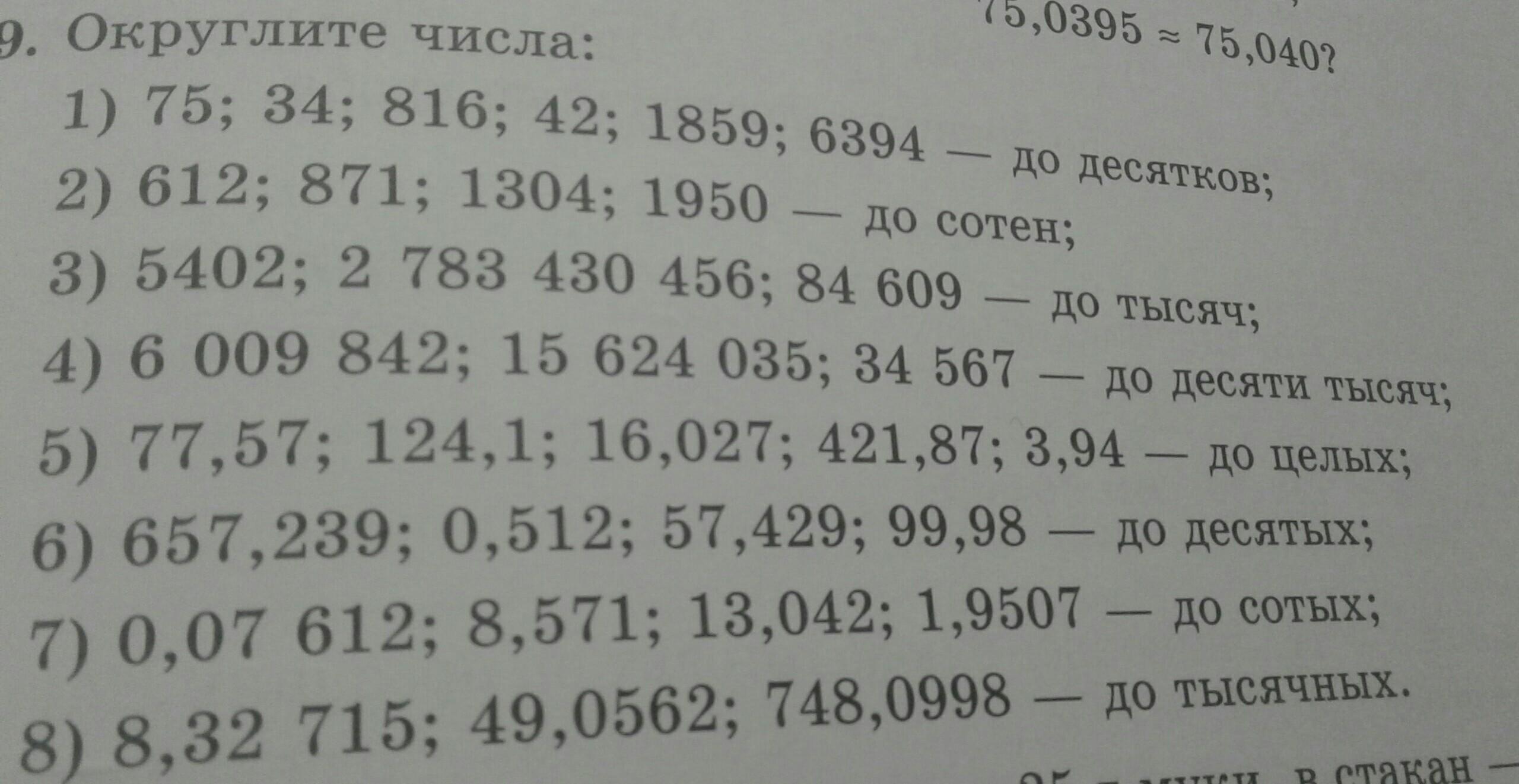 (5) До целых(округленные): 78; 124; 16; 422; 4