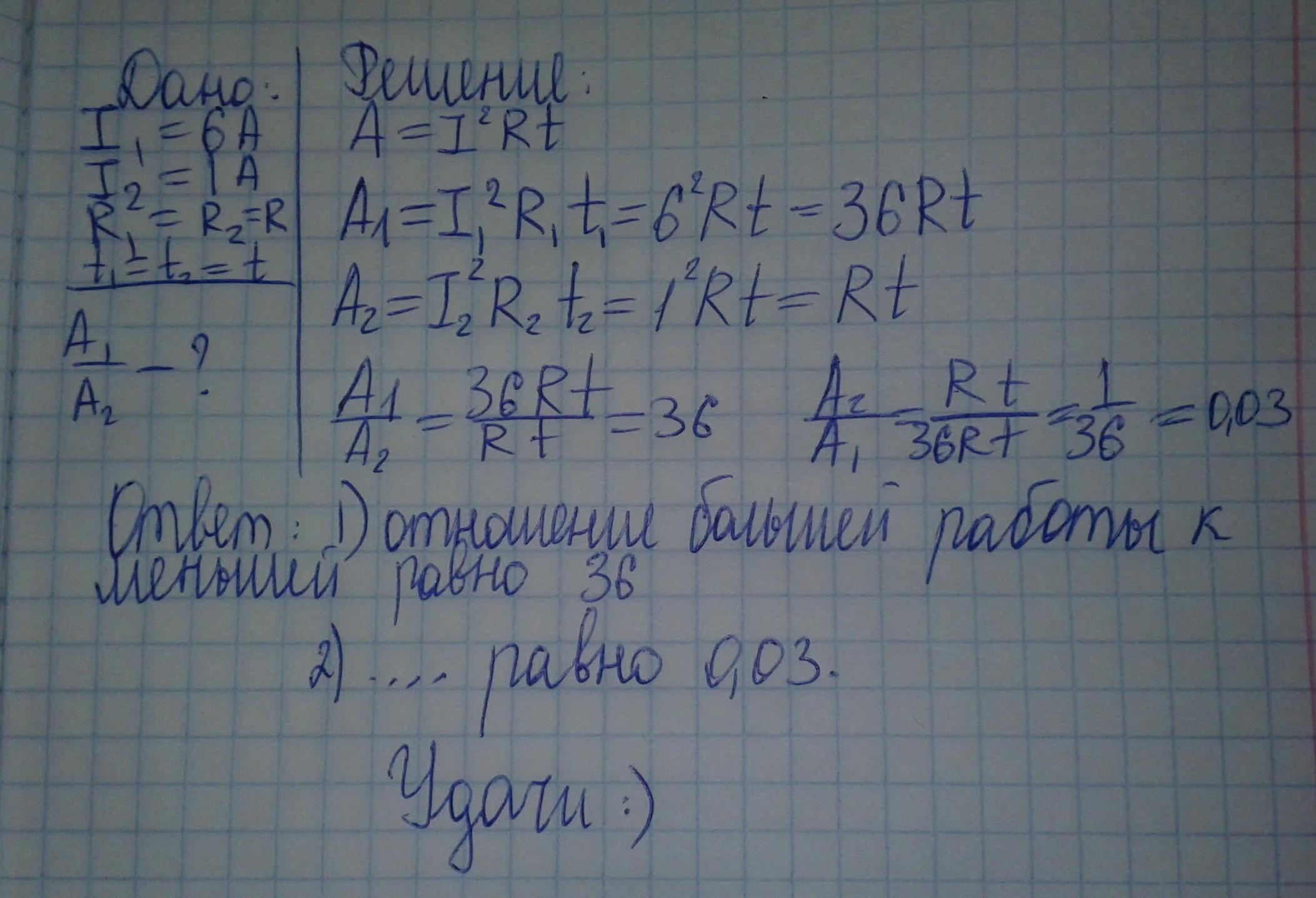 Сравните значения работы тока в этих проводниках за одно и то же время. В случае необходимости ответы округли до сотых!