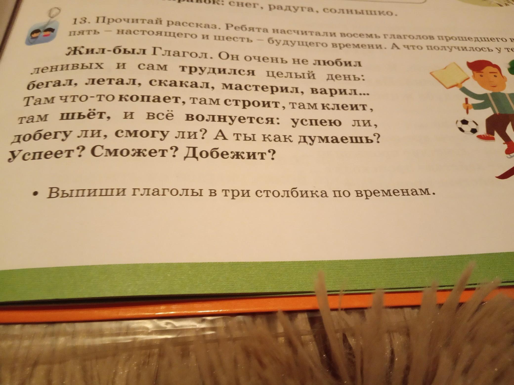 прочитай рассказ ребята насчитали 8 глаголов прошедшего времени 5 настоящего времени и 6 будущего времени А что получилось у тебя