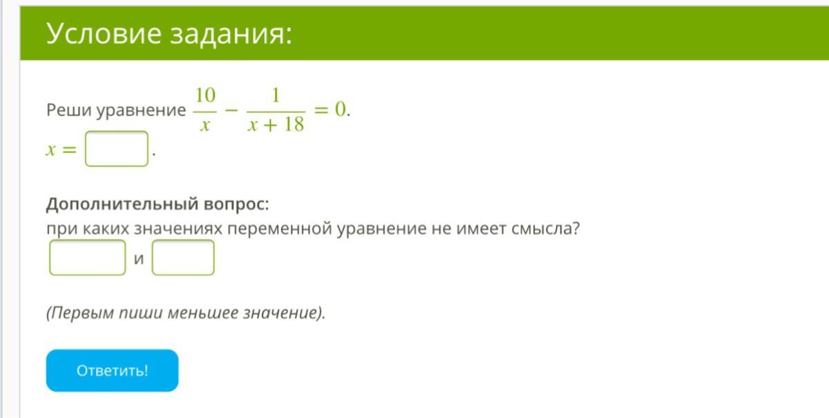 10/x – 1/(x+18)=0 // * x(x+18)=0 ODZ:x≠0 i x+18≠0