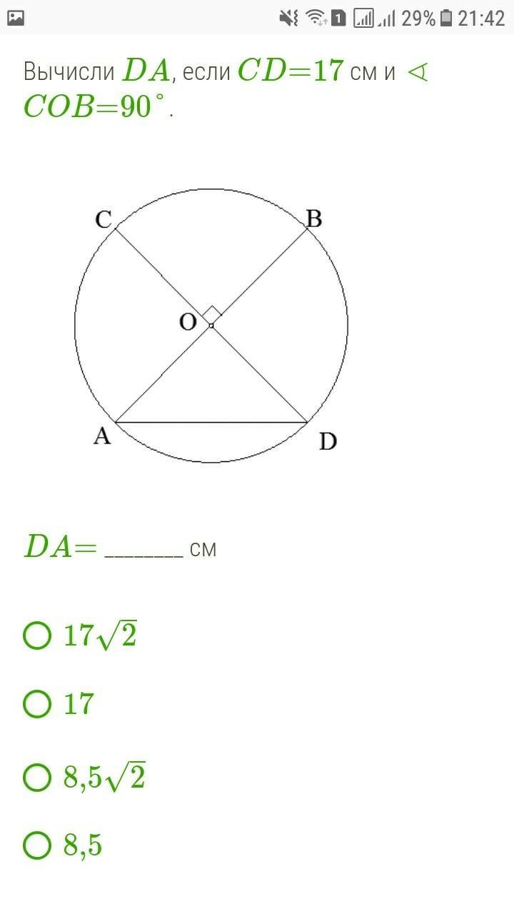 1) OD=CD/2=8,5 - радиус равен полине диаметра