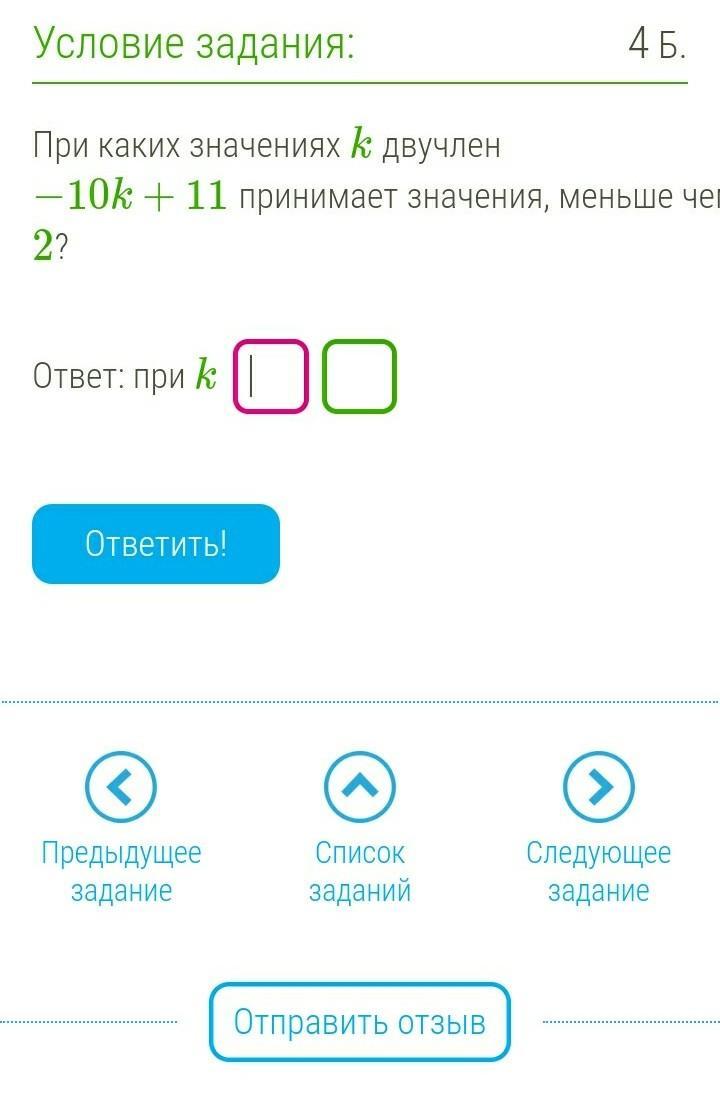 А второе значение уже является всеми отрицательными числами, например: k=2 => - 10*(2)+11=-20+11=-9 - 9<2