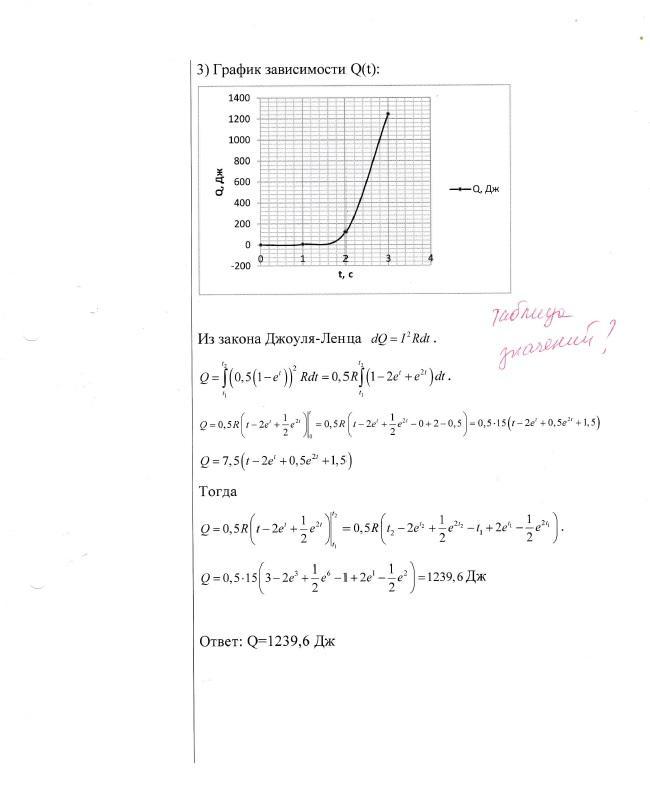 1) а в чем проблема? формула Q(t)= ... найдена, воткни в эксель или врукопашную на инж. кальк-ре... t= 0, 1, 2, 3 c ||Q= 0, 5.7, 120.1, 1245.3 Дж