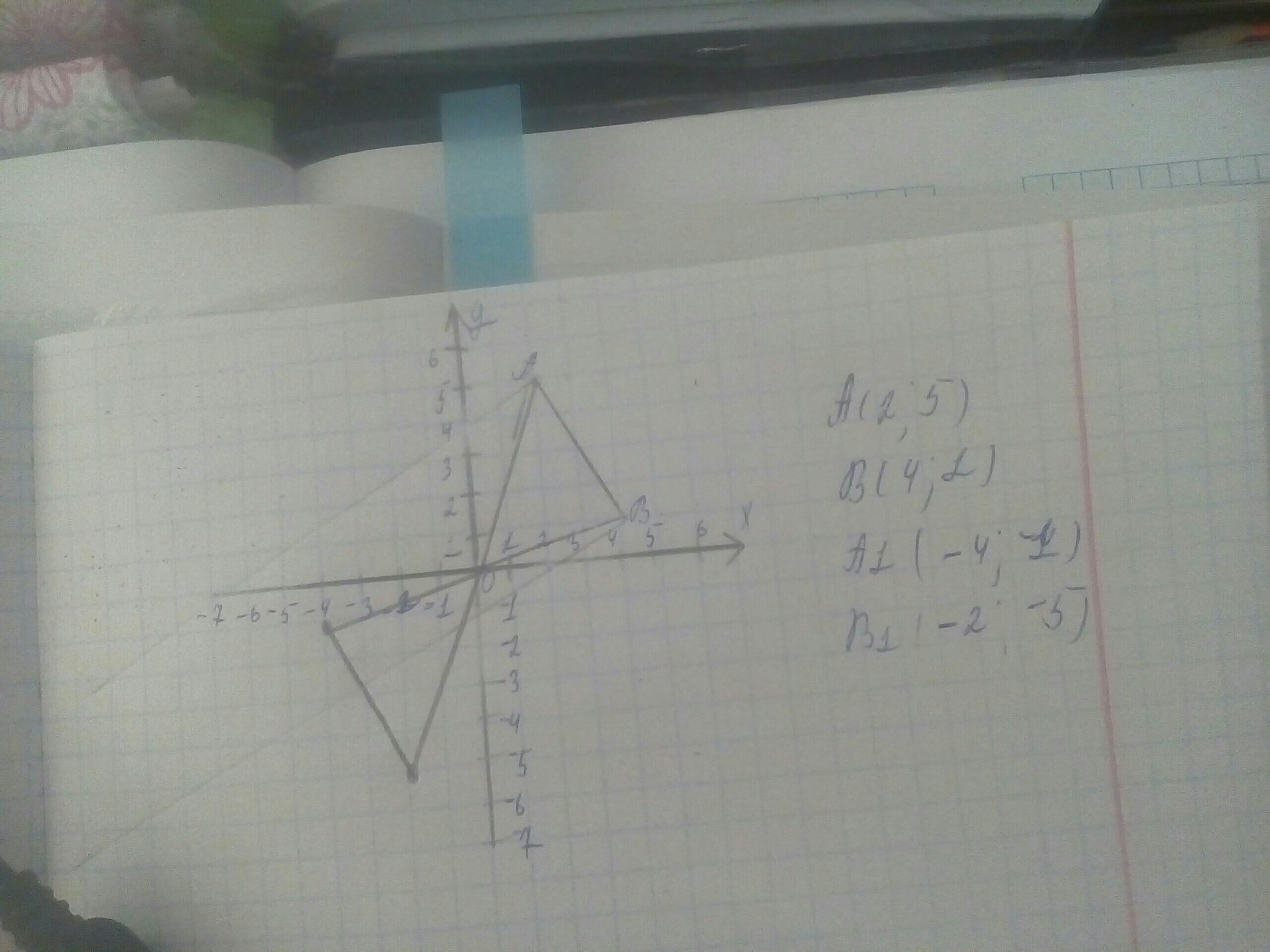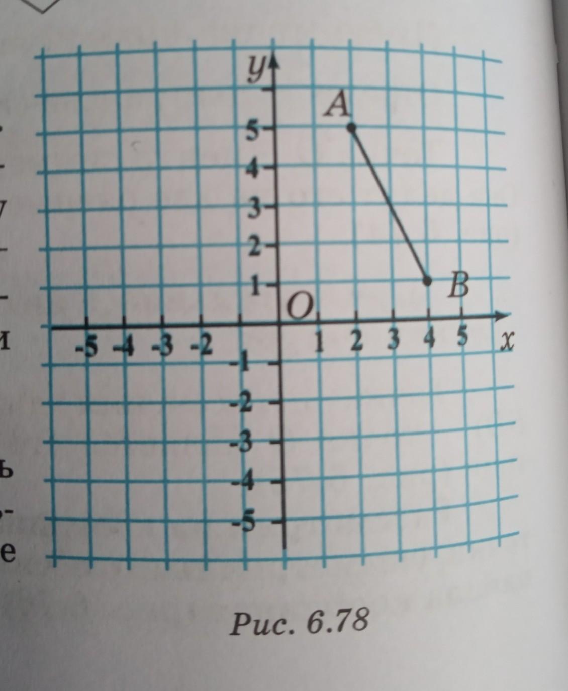 Перечертите рисунок 6.78 в тетрадь. На координатной плоскости постройте отрезок, симметричный данному отрезку AB относительно точки O - начала координат. Найдите координаты концов построенного отрезка и запишите их