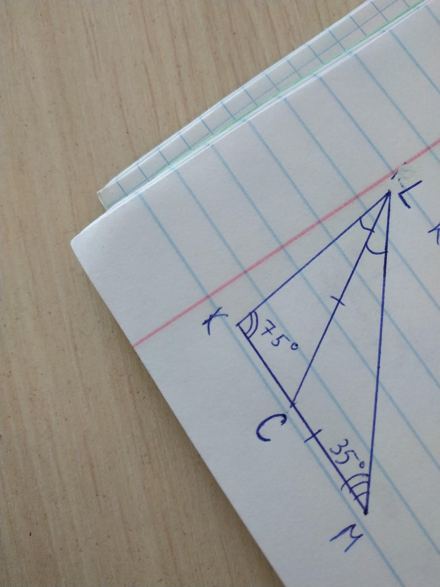 В треугольнике KLM проведена биссектриса LC, K=75°, M=35°