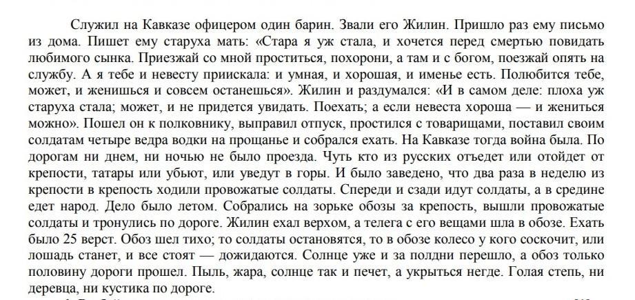 На Кавказе идёт война, поэтому Жилин переправляется вместе с вооруженным обозом, который ходит между городами.