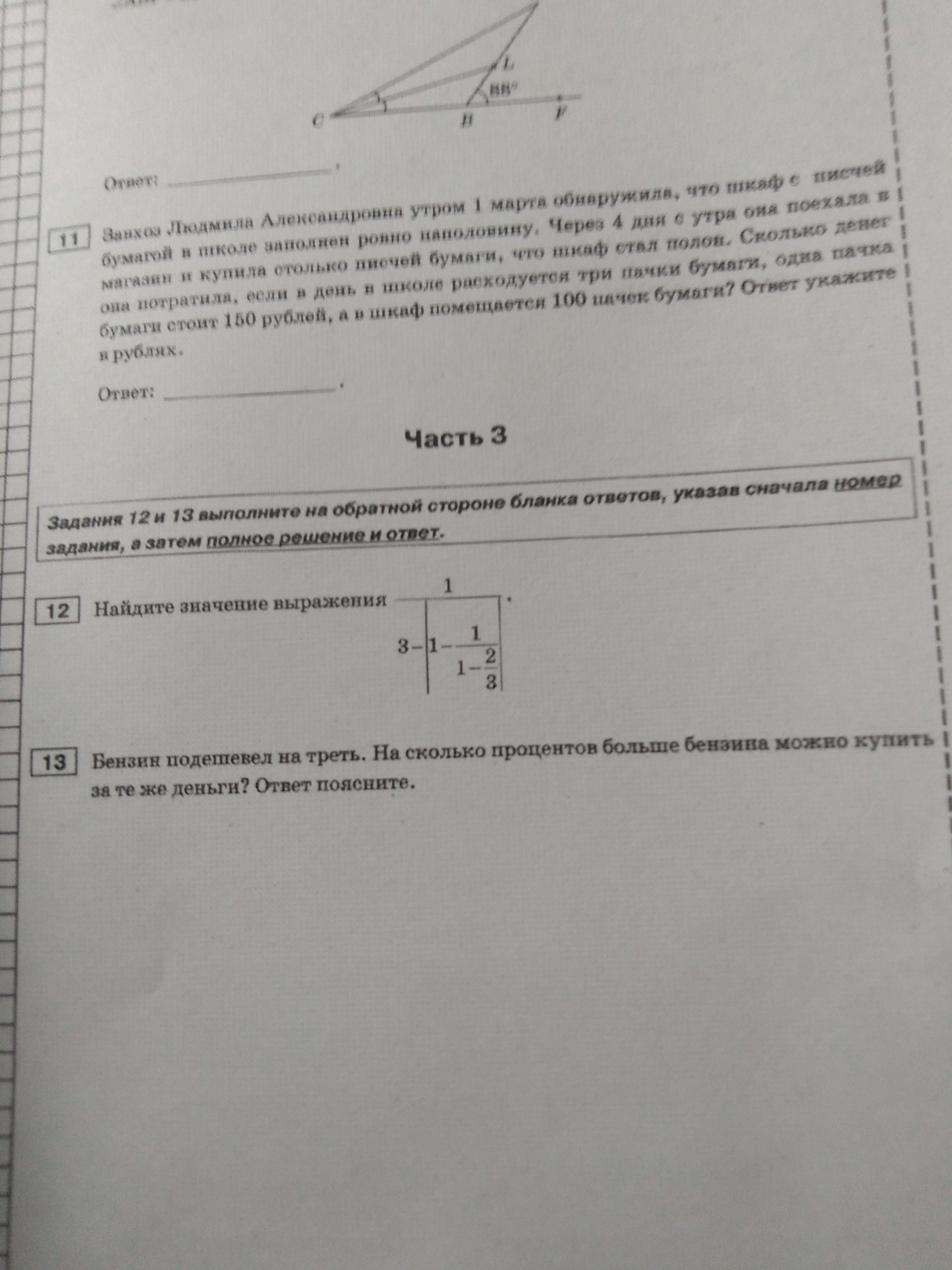 Если бензин подешевел на 1/3, то его стоимость составит 2/3 от первоначальной цены. 1/3 по отношению к 2/3 это половина.(50%) ,значит бензина по новой цене можно купить на 50 % больше
