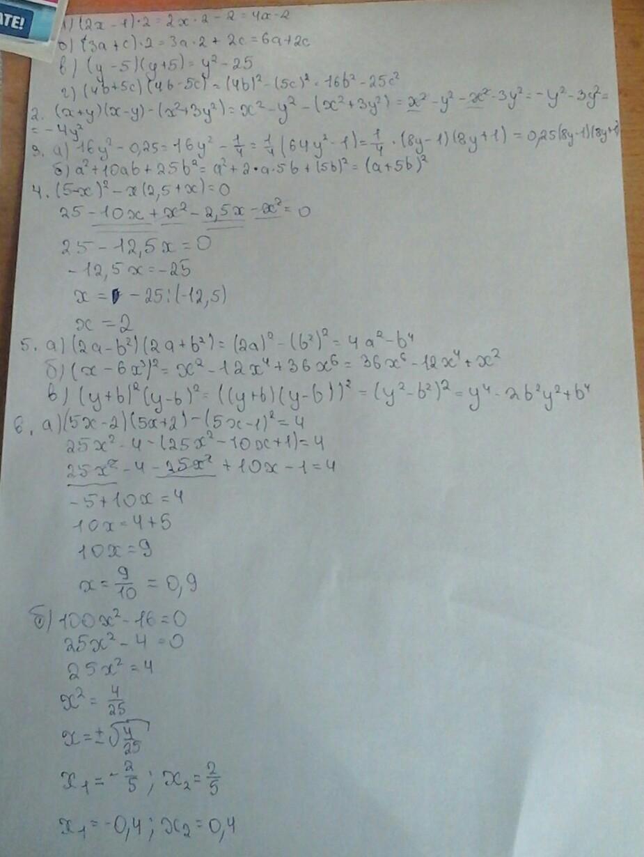 а) (5x – 2) (5x + 2) – (5x – 1)2 = 4; б) 100х2 – 16 = 0.