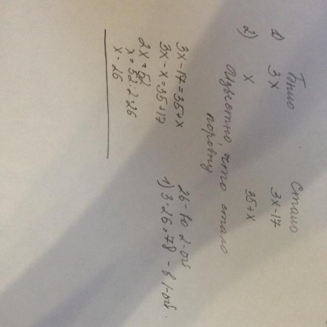 в одной коробке было в 3 раза больше яблок чем в другой. Если из нее взять 17 яблок, в другую коробку добавить 35, то в обеих коробках яблок станет по ровну. сколько яблок было первоначально в каждой коробке