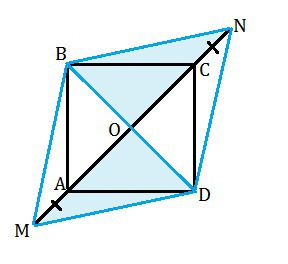 на продолжении диагонали AC квадрата ABCD отложены равные отрезки AM и CN.докажите что BNDM ромб