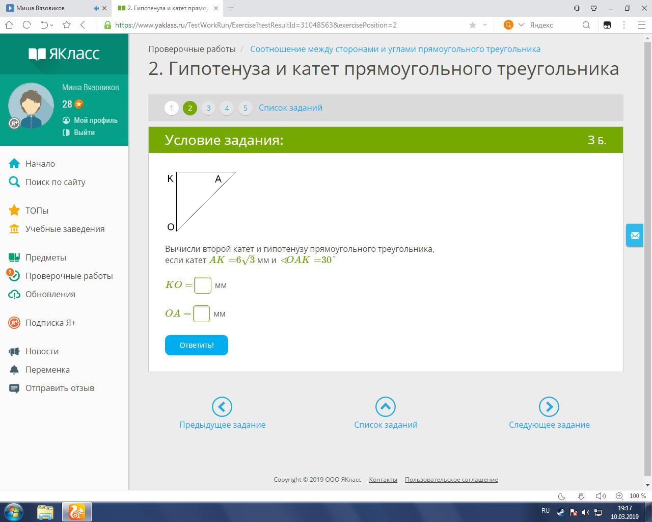 Тогда КО= х/2 (т.к. это катет, лежащий напротив угла в 30 градусов)