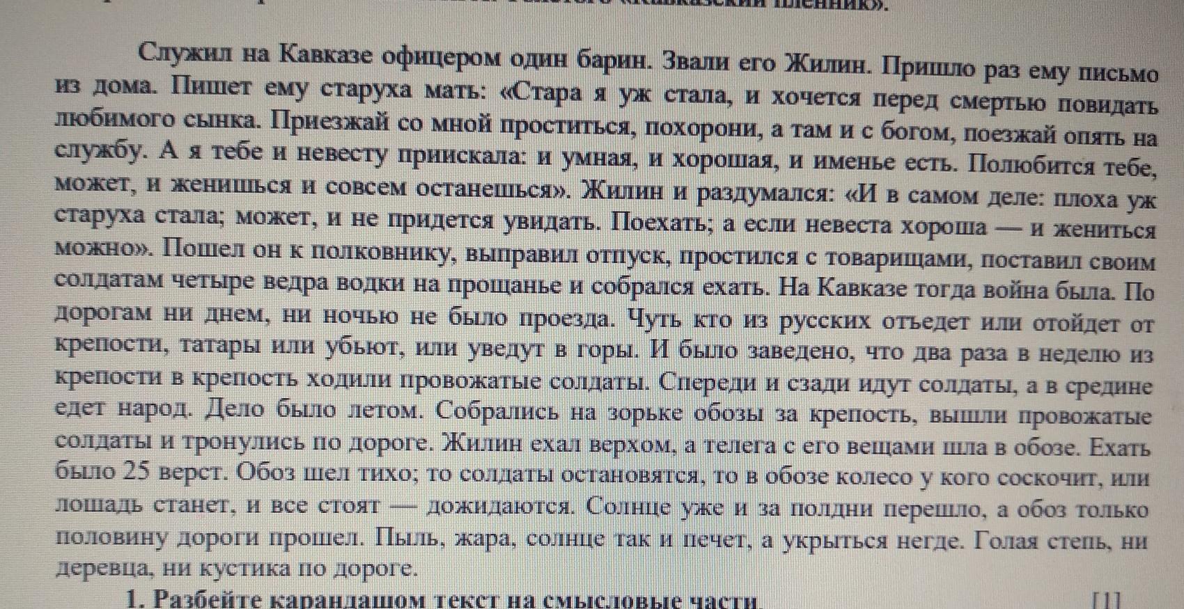 I. Служил на Кавказе офицером один барин. Звали его Жилин.