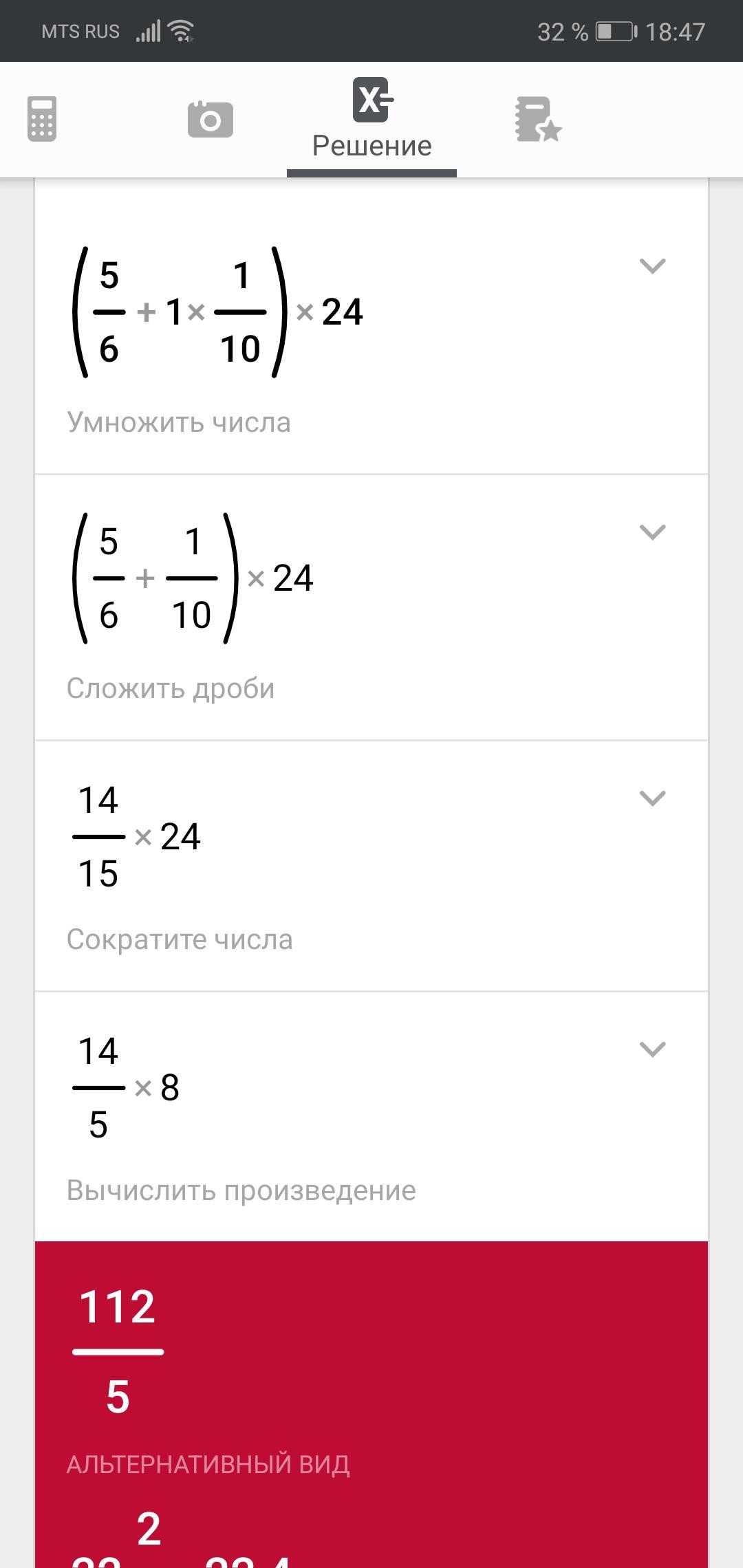 =1 14/15 * 24 = 46 2/5= 46.4