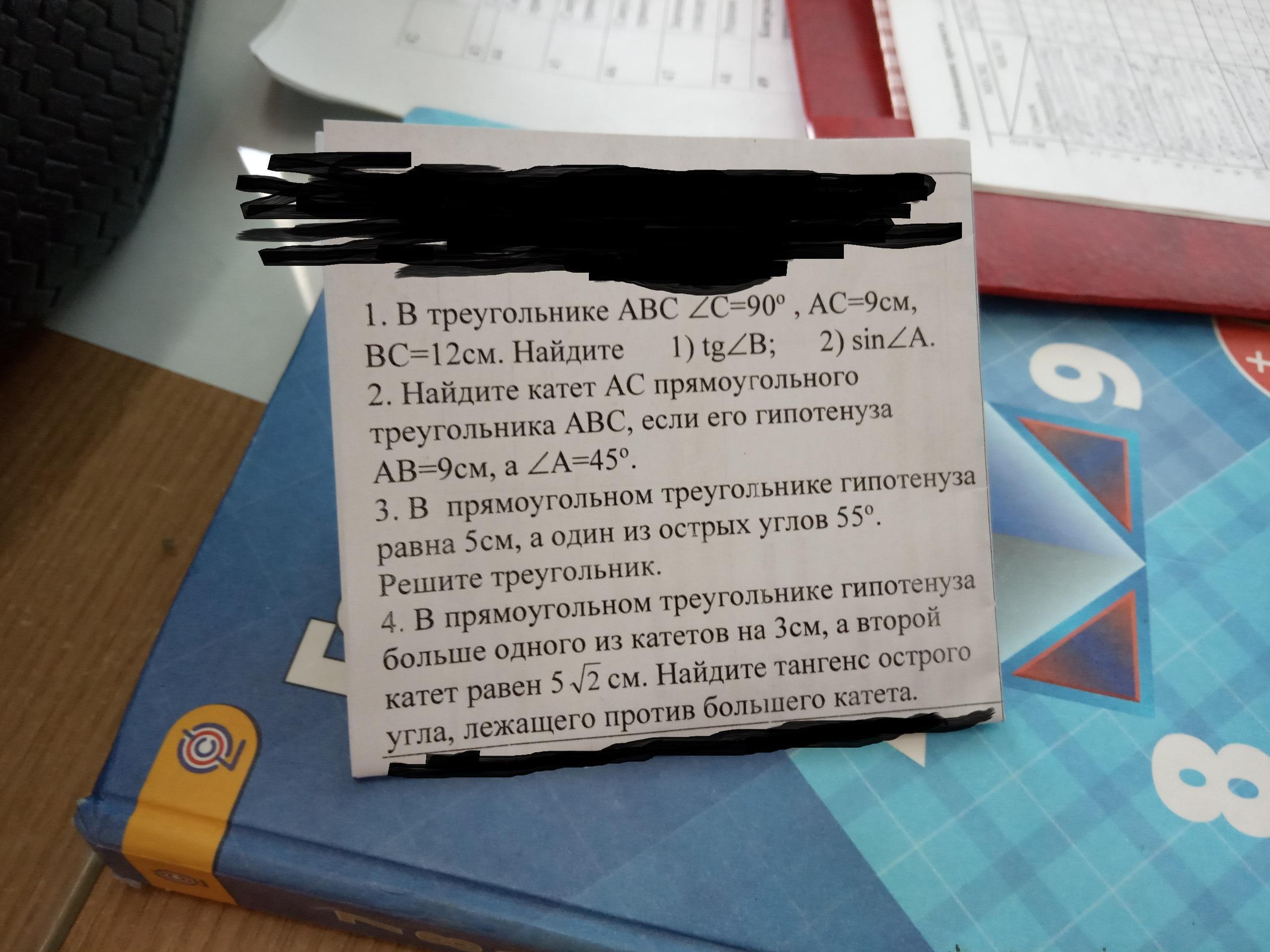 1. 1) Решение: Тангенс — это отношение противолежащего катета к прилежащему, значит tg∠B=AC/BC=9/12=3/4=0,75