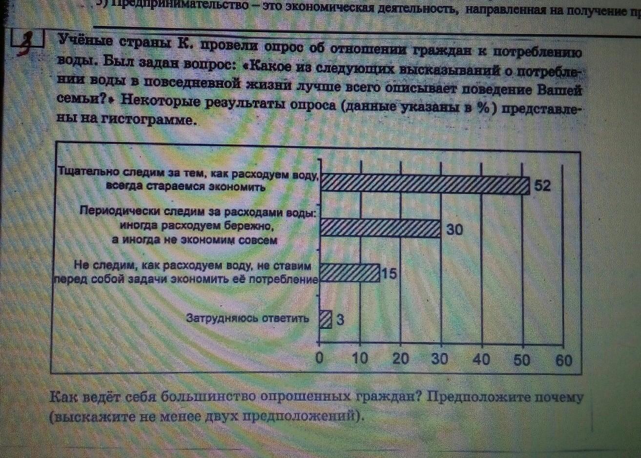 можно предположить, что в стране к дефицит пресной воды и каждый литр важен для населения. также, возможно, жители страны К любят природу и не хотят вредить ей, они бережно относятся к ней и не тратят её ресурсы понапрасну
