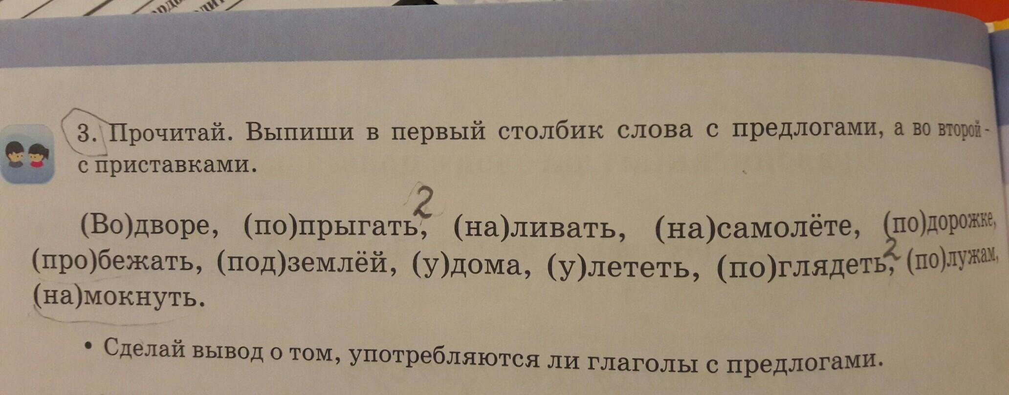 Во дворе, попрыгать, наливать, на самолете, по дорожке, пробежать, под землей, у дома, улететь, поглядеть, по лужам, намокнуть.