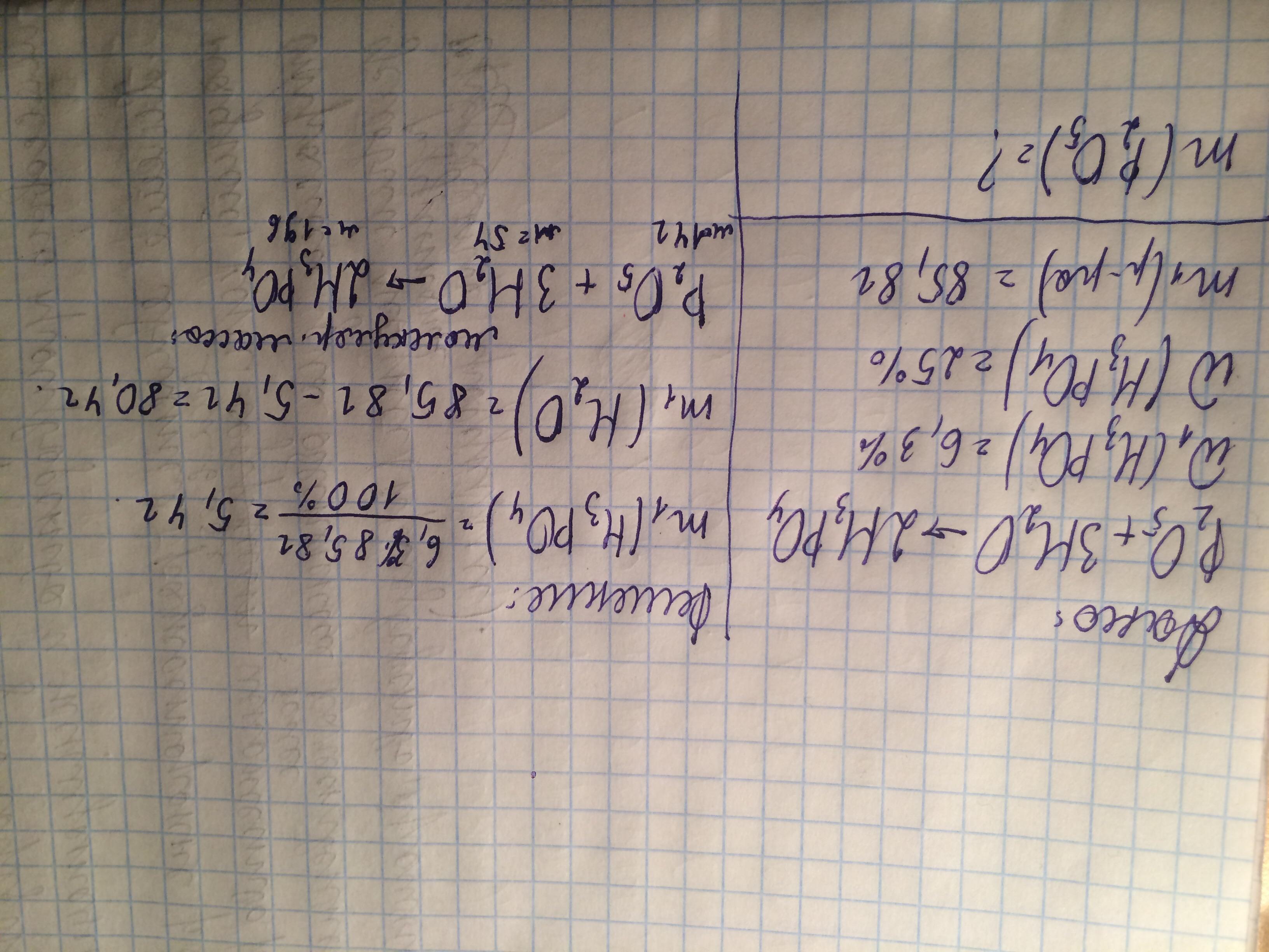 Какую массу P2O5 нужно добавить к 85.8г раствора сw(H3PO4) =6.3%,чтобы после нагревания получить раствор сw(H3PO4) =25%
