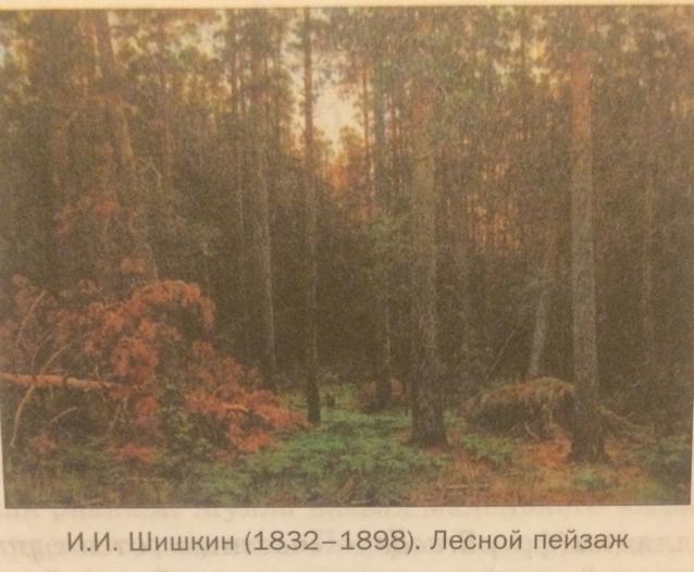 Добавьте к тексту несколько предложений с однородными и неоднородными определениями, описав лес на картине И.И. Шишкина.