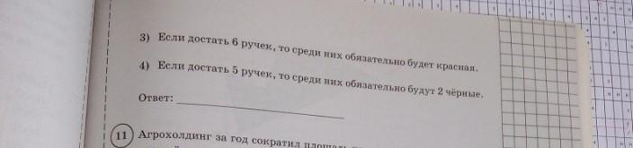 Третье верно, т.к. синих и чёрных ручек всего 5.