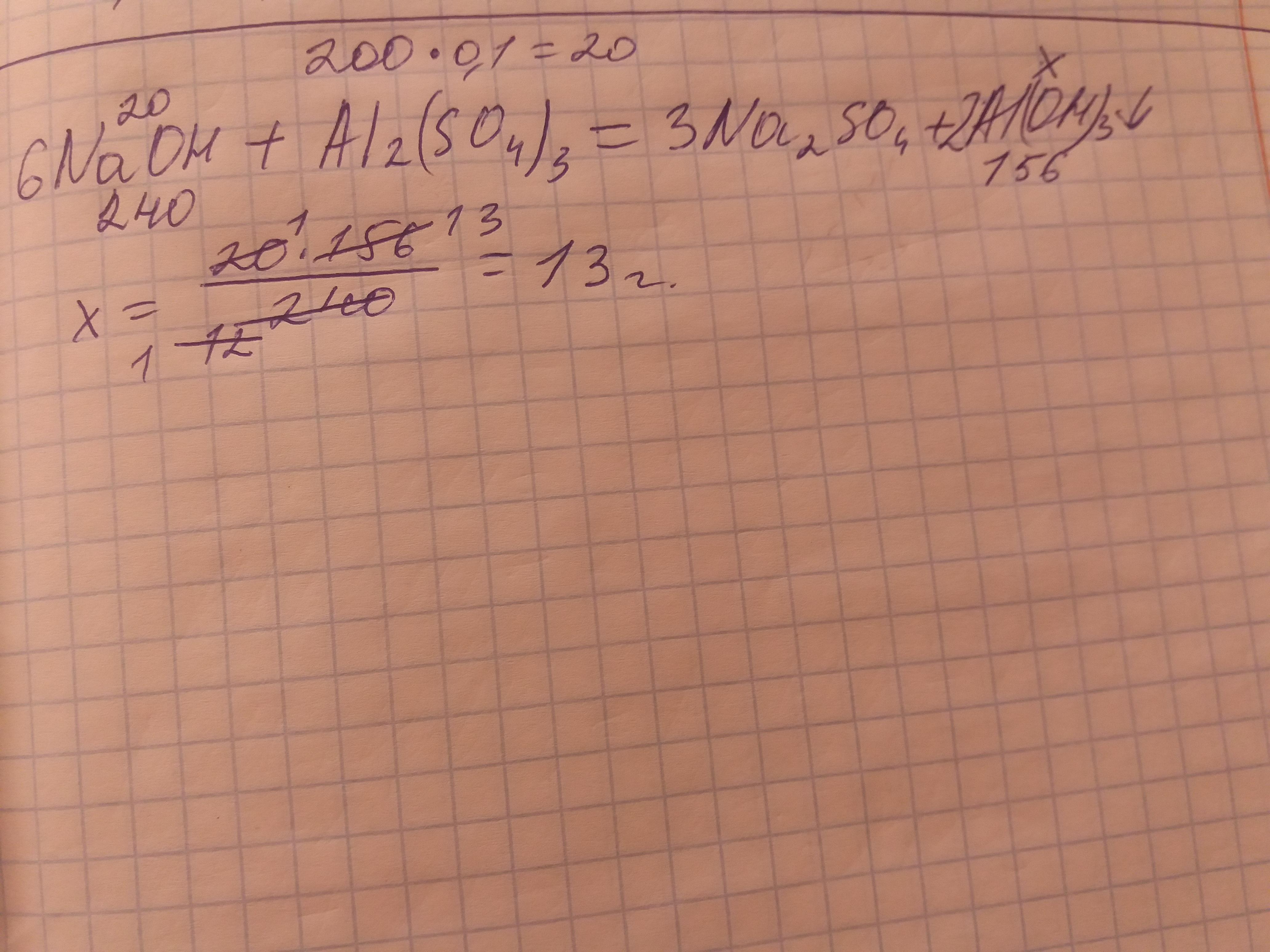 Вычислите массу осадка, полученного при сливании 200г 10 % раствора гидроксида натрия с раствором сульфата алюминия.