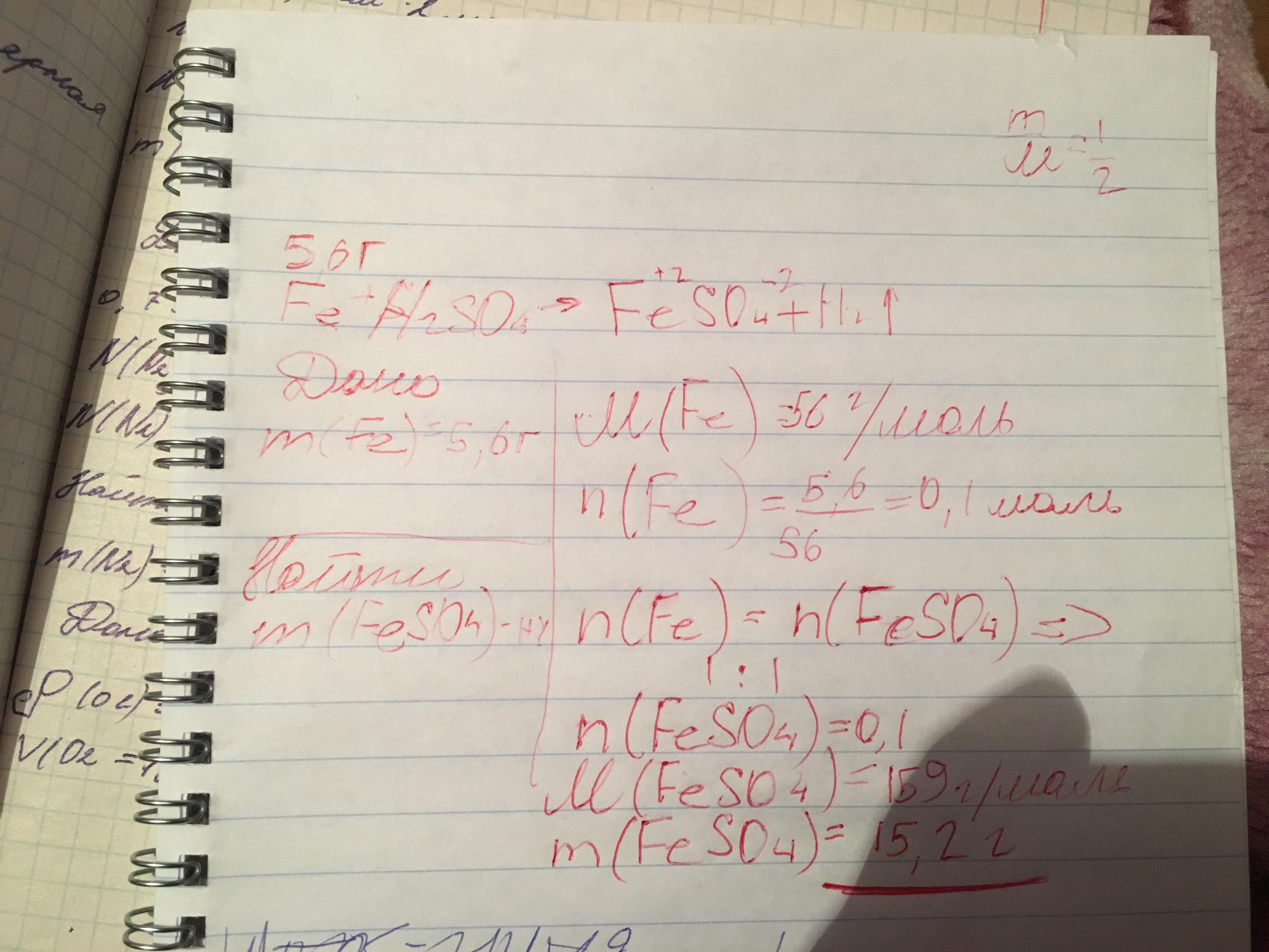 Вычислите массу сульфат железа (2) который образуется при взаимодействии 5,6 г железа с серной кислотой