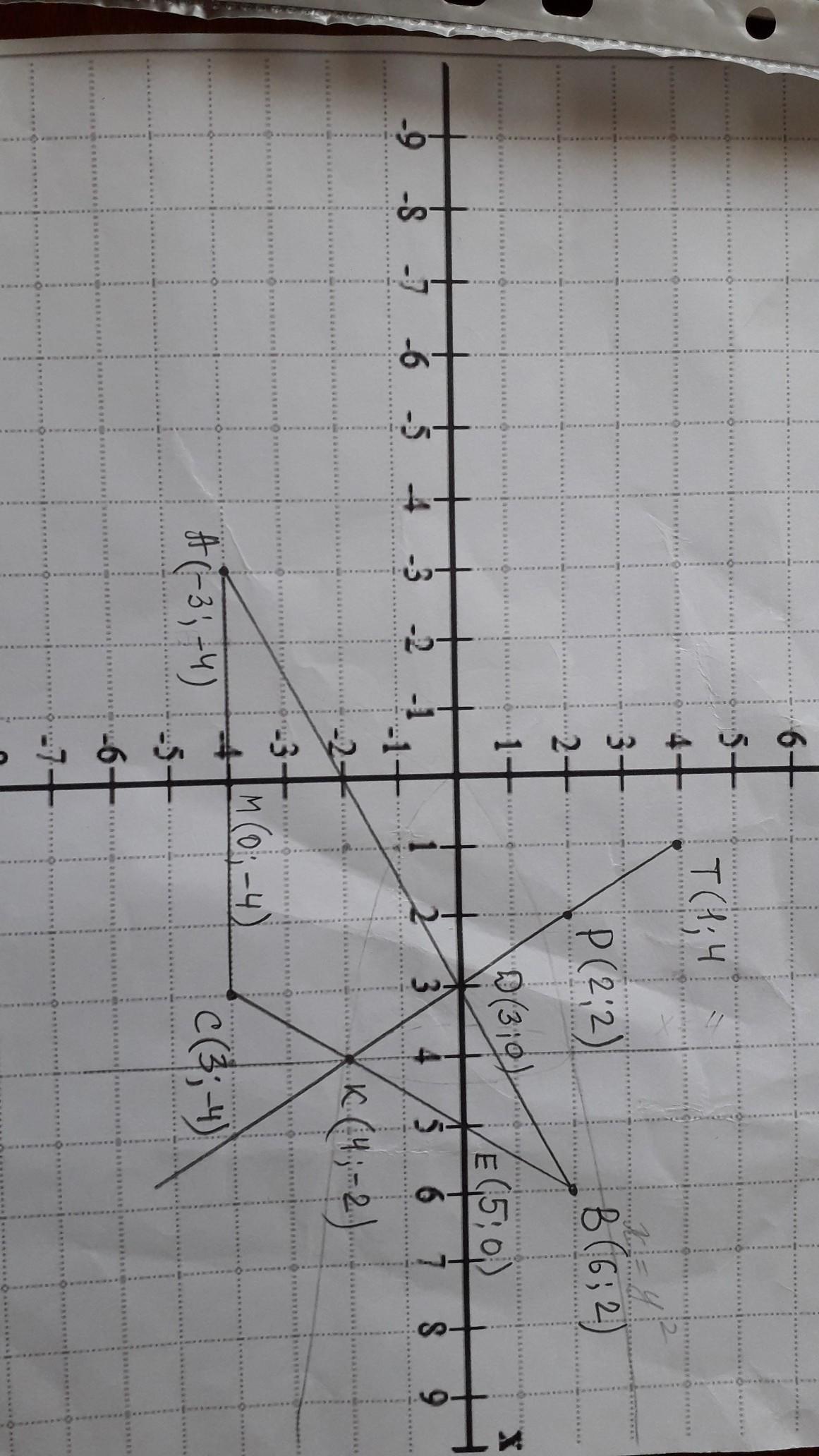 т.Д(3;0)и т.Е(5;0)-точки пересечения с Ох, т. М(0;-4)-точка пересечения с Оу