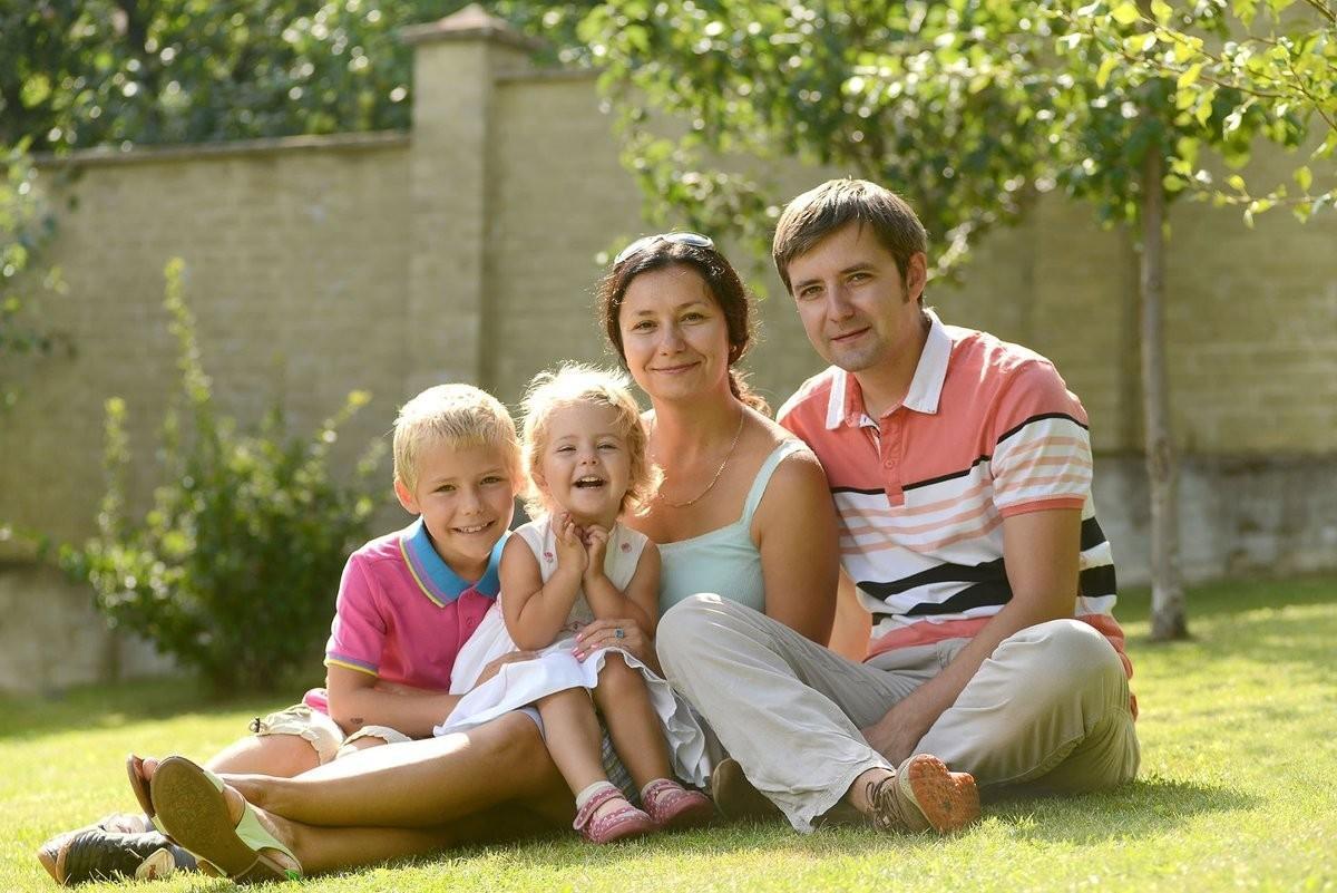Сейчас лето. Погода стоит теплая. Семья находится в парке. Они сидят на зеленой траве очень близко друг к другу. Одеты они в лёгкую летнюю одежду. Они отдыхают в парке. Все они улыбаются и кажутся, очень счастливыми. Я думаю, что это очень дружная семья.