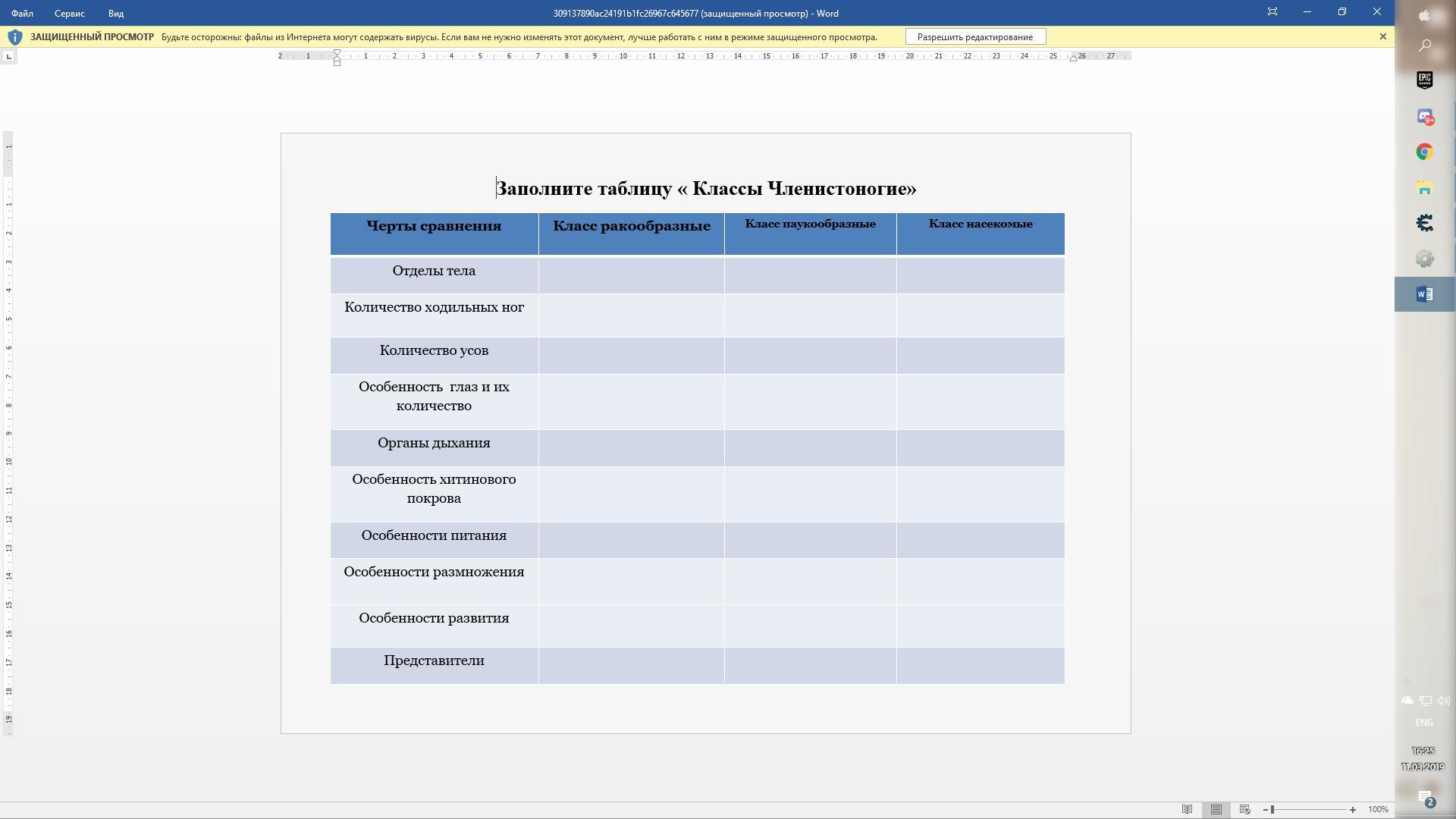 Заполните таблицу по членистоногим даю макс. кол-во баллов!