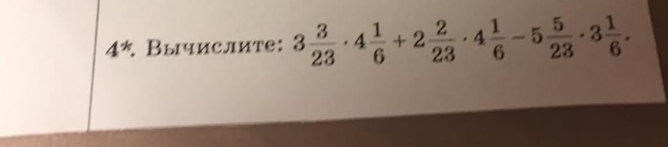 =4 1/6*(3 3/23+2 2/23)-5 5/23*3 1/6=4 1/6*5 5/23-5 5/23*3 1/6=5 5/23*(4 1/6-3 1/6)=5 5/23*1=5 5/23