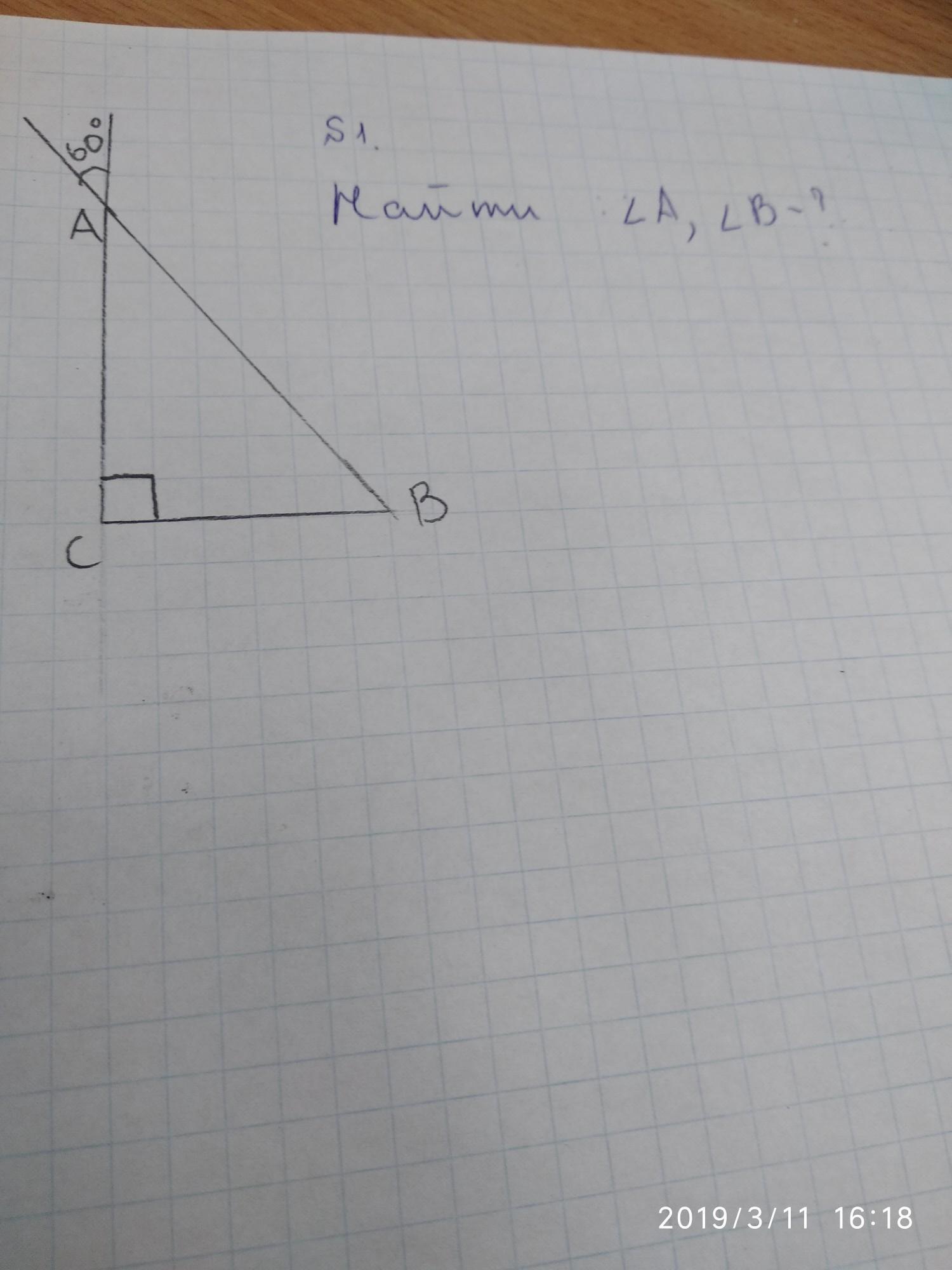 <СAB = 60 т.к. <A - вертикальный. <B = 180 - 90 - 60 = 30.