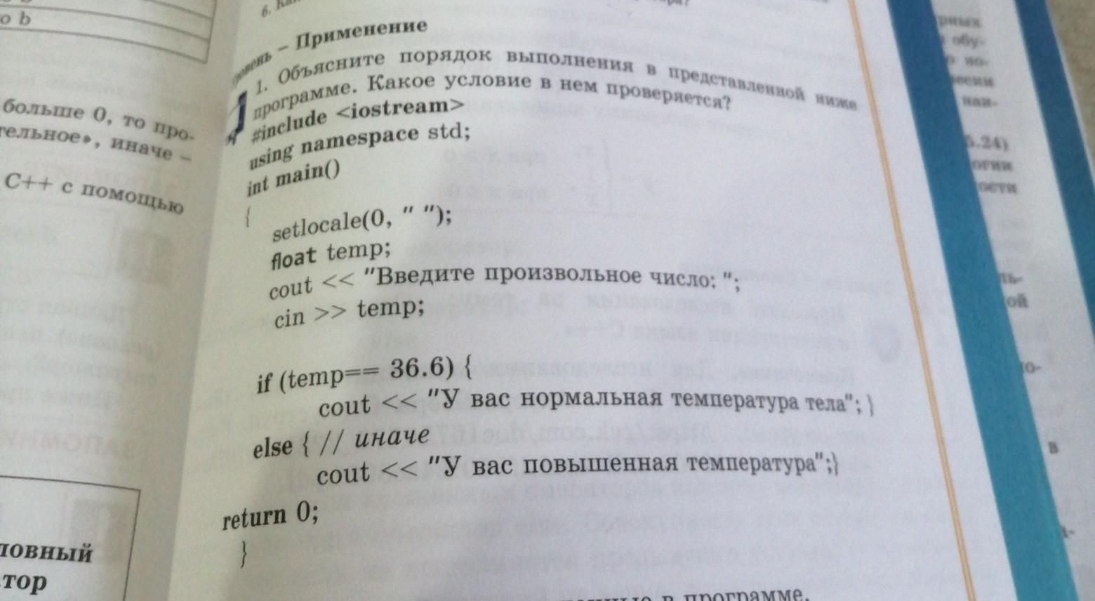 Объясните порядок выполнения в предоставленной ниже программе. Какое условие в нем проверяется?