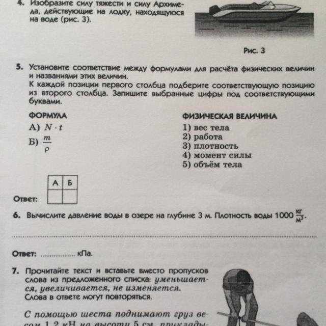 6). р = р(ро)gH = 1000*9,8*3 = 9800*3 = 29400 Па.