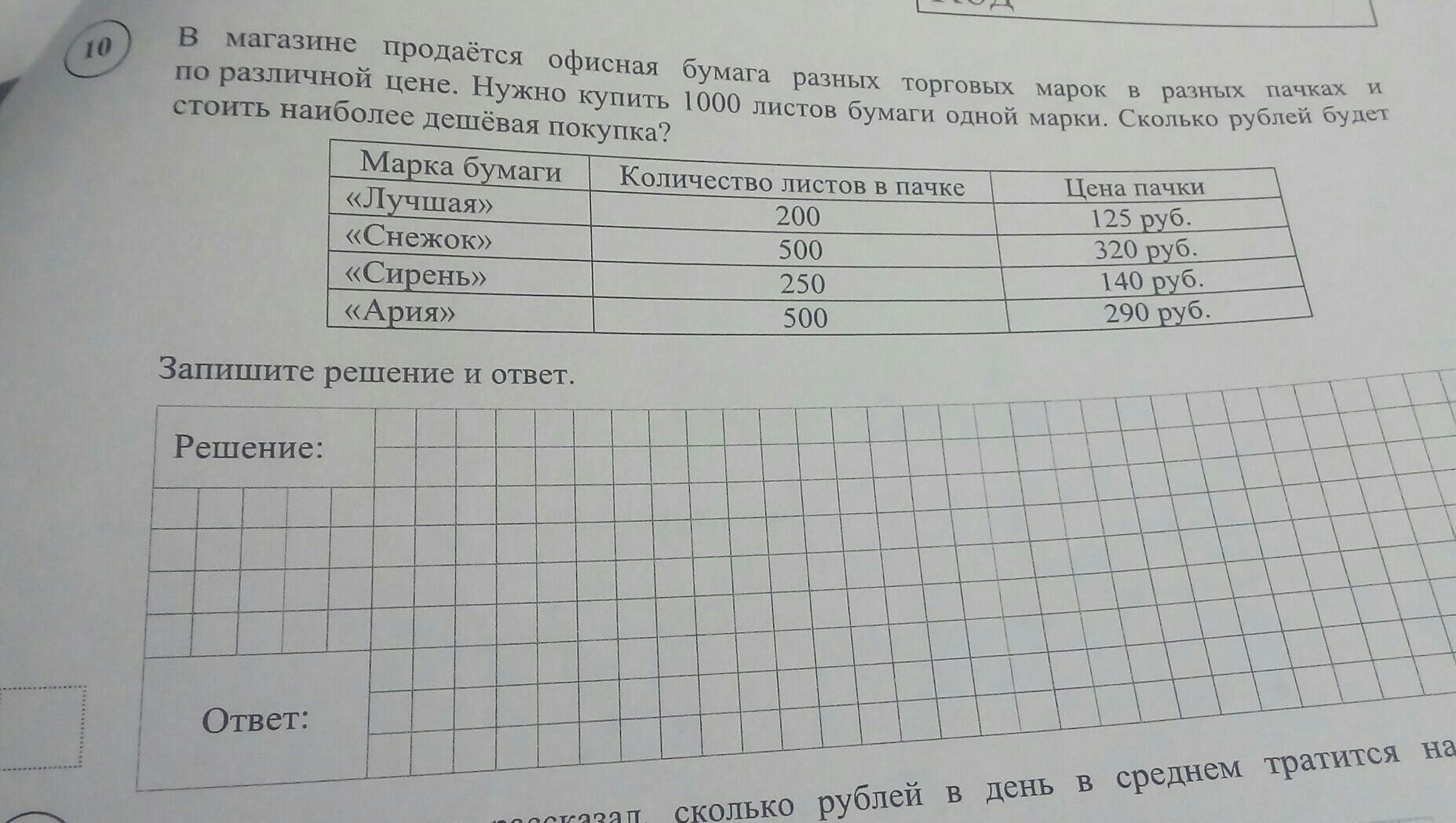1000:250=4 пачки нужно купить