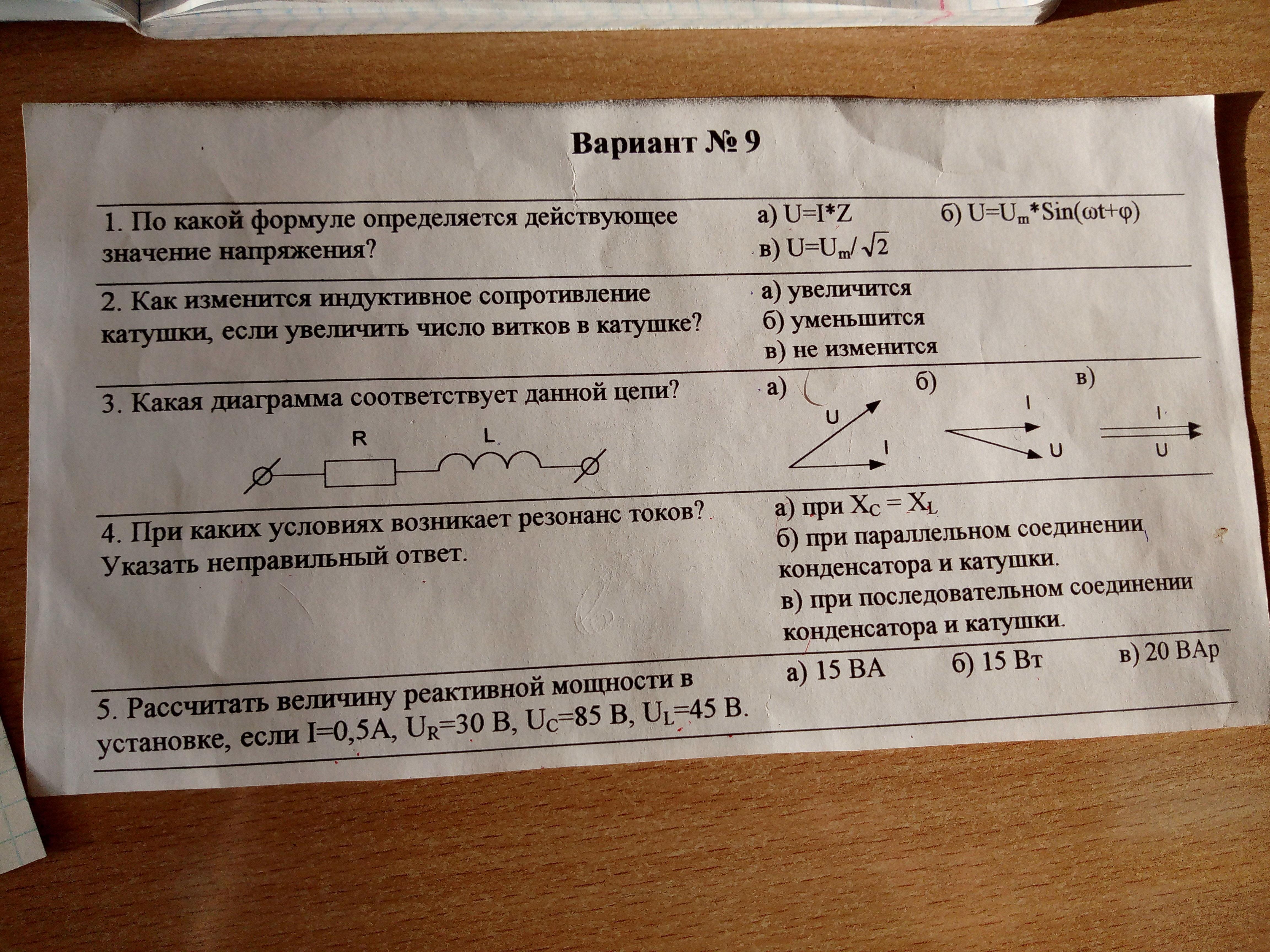 Электротехника хромает действующее значение это амплитуда деленная на корень из двух, второе правильно третий про диаграму ну никак не диаграма активного сопротивления, вообще то при резонансе токов реактивные сопротивления тоже равны только соединение параллельное а вот соединены последовательно это не правильно, последний правильно