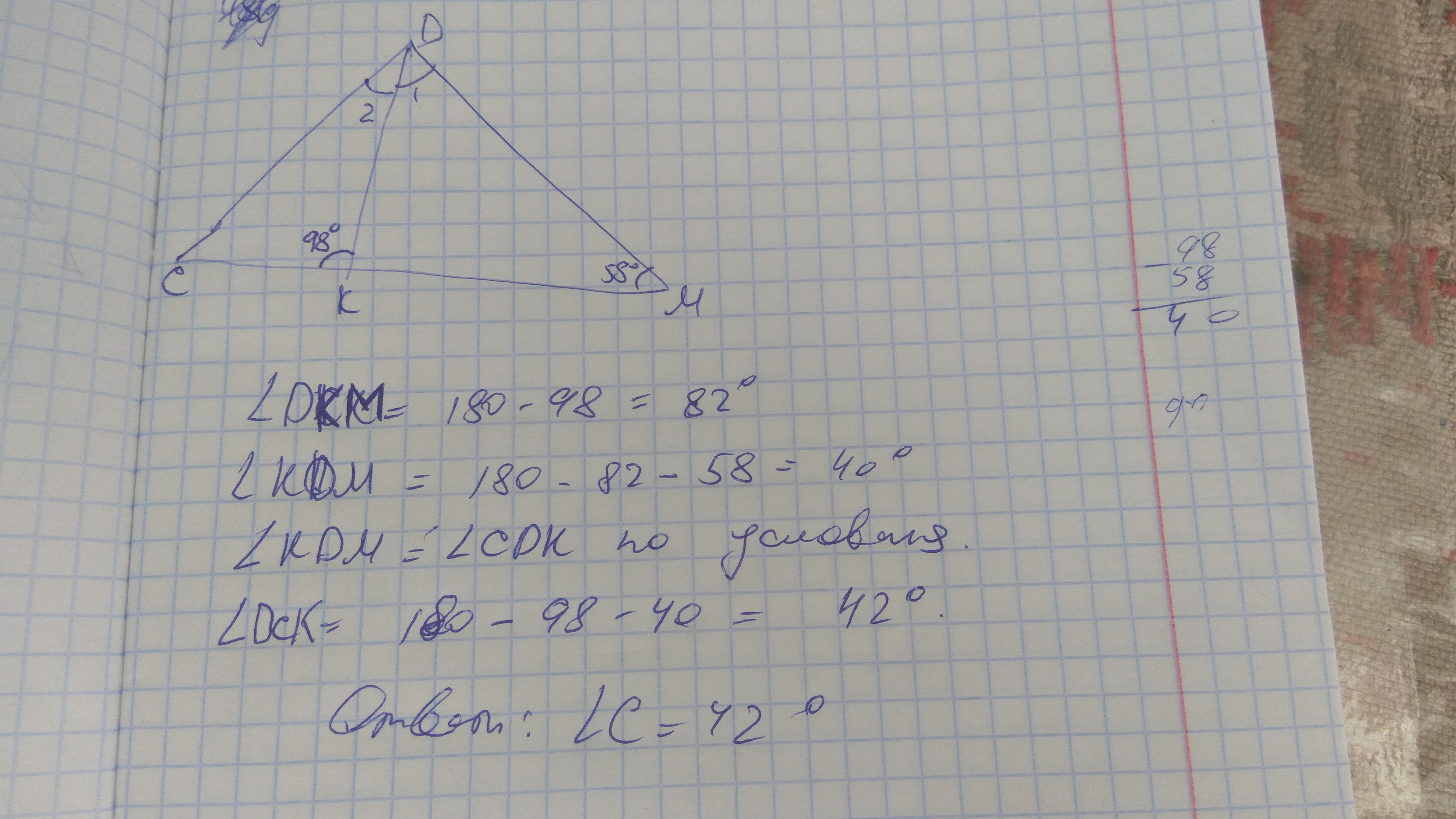 ∠СKM=180 ∠DKM=180-98=82°