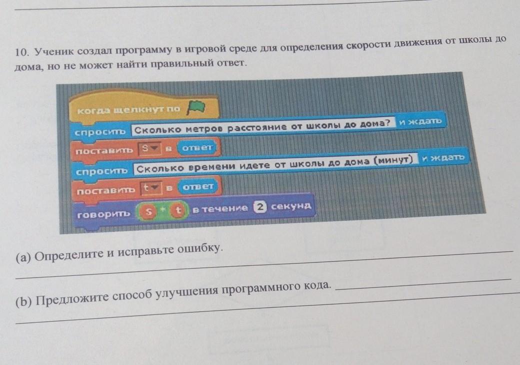 ученик создал программу в игровой среде для определения скорости движения от школы до дома, но не может найти правильный ответ