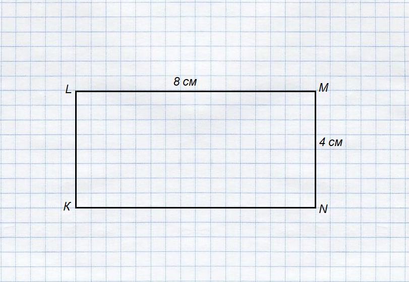 Начертить прямоугольник KLMN со сторонами 8 см и 4 см.
