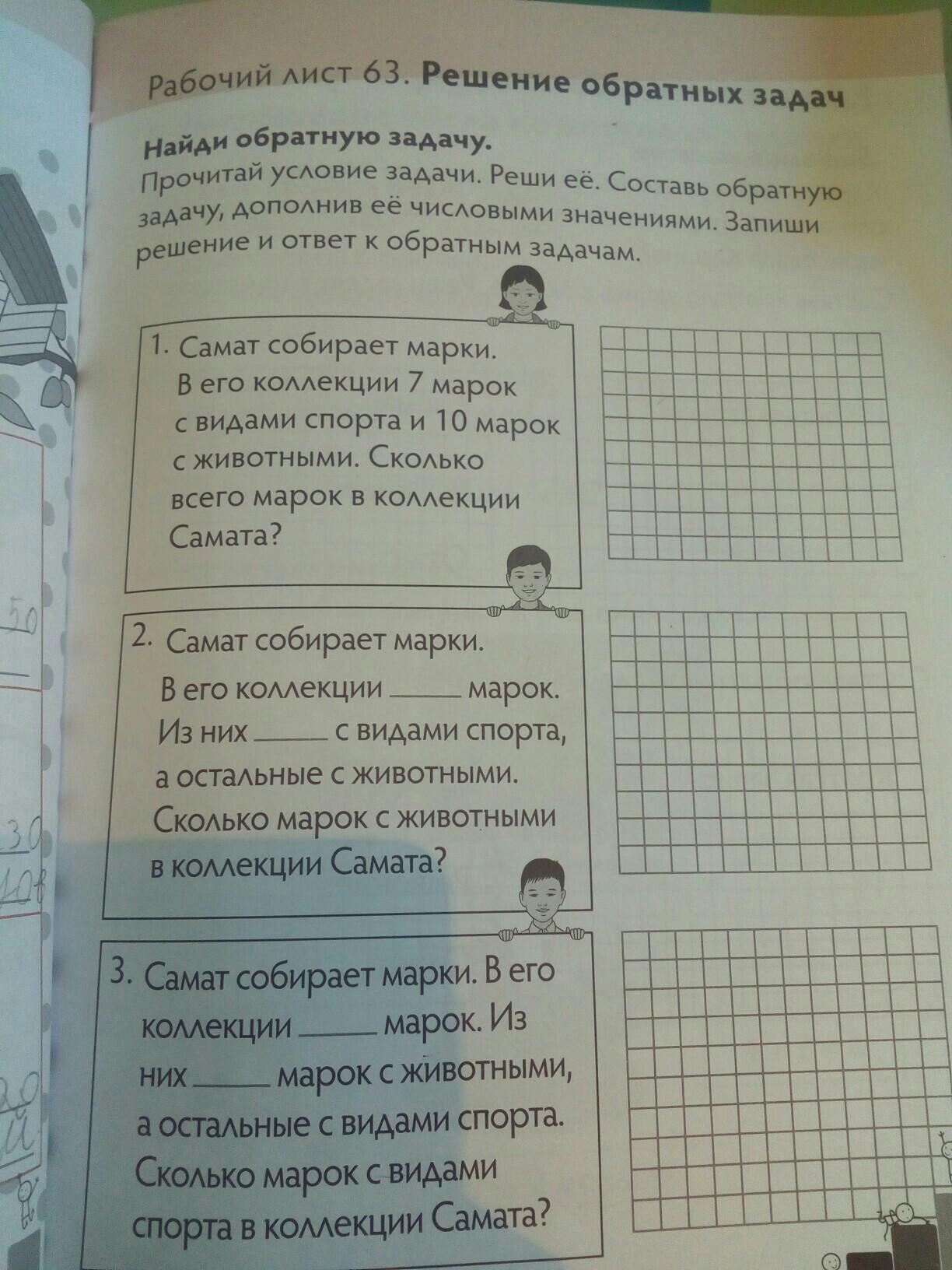1). Самат собирает марки. В его коллекции 7 марок с видами спорта и 10 марок с животными.